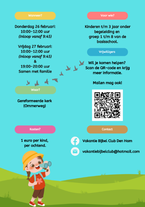 26 en 27 februari is het weer zover, de Vakantie Bijbel Club Den Ham is er weer…